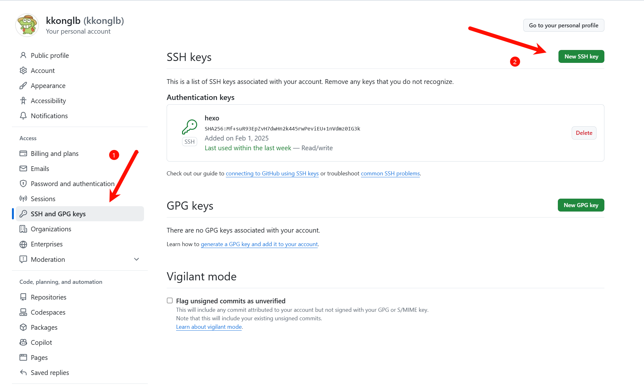 git remote add origin git@github.com:kkonglb/hexo-blog.git #最后这个是自己github仓库的ssh路径